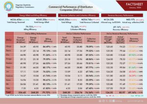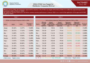 The January 2026 commercial performance factsheet released by the regulator on Wednesday highlighted the financial health and efficiency of DisCos, including the new Aggregate Technical, Commercial and Collection (ATC&C) loss targets.
